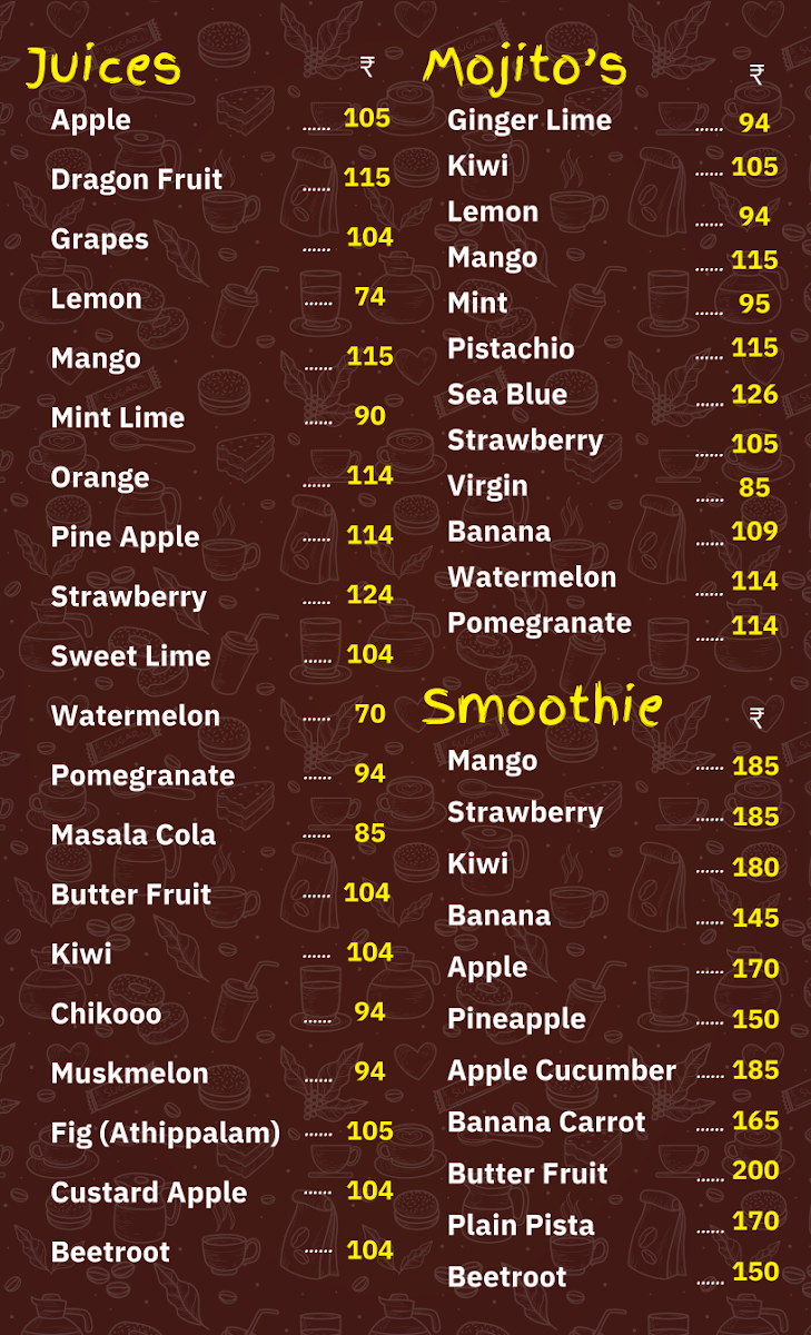Beverage options, as confirmed by customer experiences, include a variety of coffee preparations, juices, milkshakes, and smoothies, suitable for coffee breaks or refreshing drink choices alongside meals.